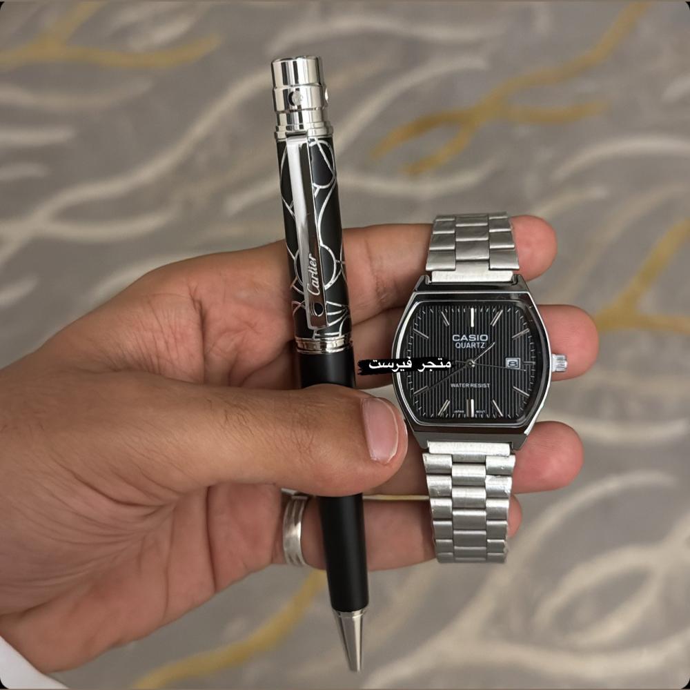 طقم ساعه وقلم كارتير يليق بك ✨ياتيك بتغليف جميل مجاناً و مناسب للاهداء ❤️الرجاء ابعاد الساعه والقلم عن العطور للحفاظ على لمعان المنتج الرجاء عدم تاخر الساعه لفترة طويله في الماء