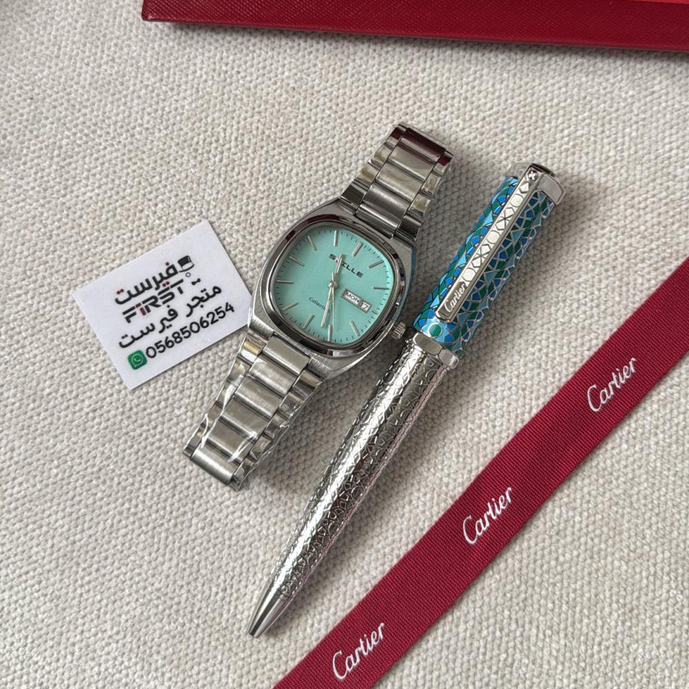 طقم ساعه وقلم كارتير يليق بك ✨ياتيك بتغليف جميل مجاناً و مناسب للاهداء ❤️الرجاء ابعاد الساعه والقلم عن العطور للحفاظ على لمعان المنتج الرجاء عدم تاخر الساعه لفترة طويله في الماء