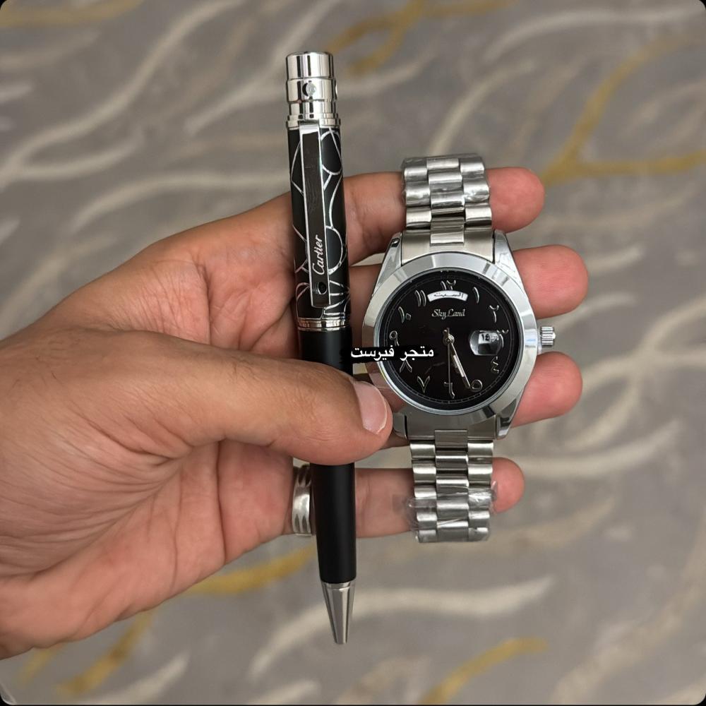طقم ساعه وقلم كارتير يليق بك ✨ياتيك بتغليف جميل مجاناً و مناسب للاهداء ❤️الرجاء ابعاد الساعه والقلم عن العطور للحفاظ على لمعان المنتج الرجاء عدم تاخر الساعه لفترة طويله في الماء