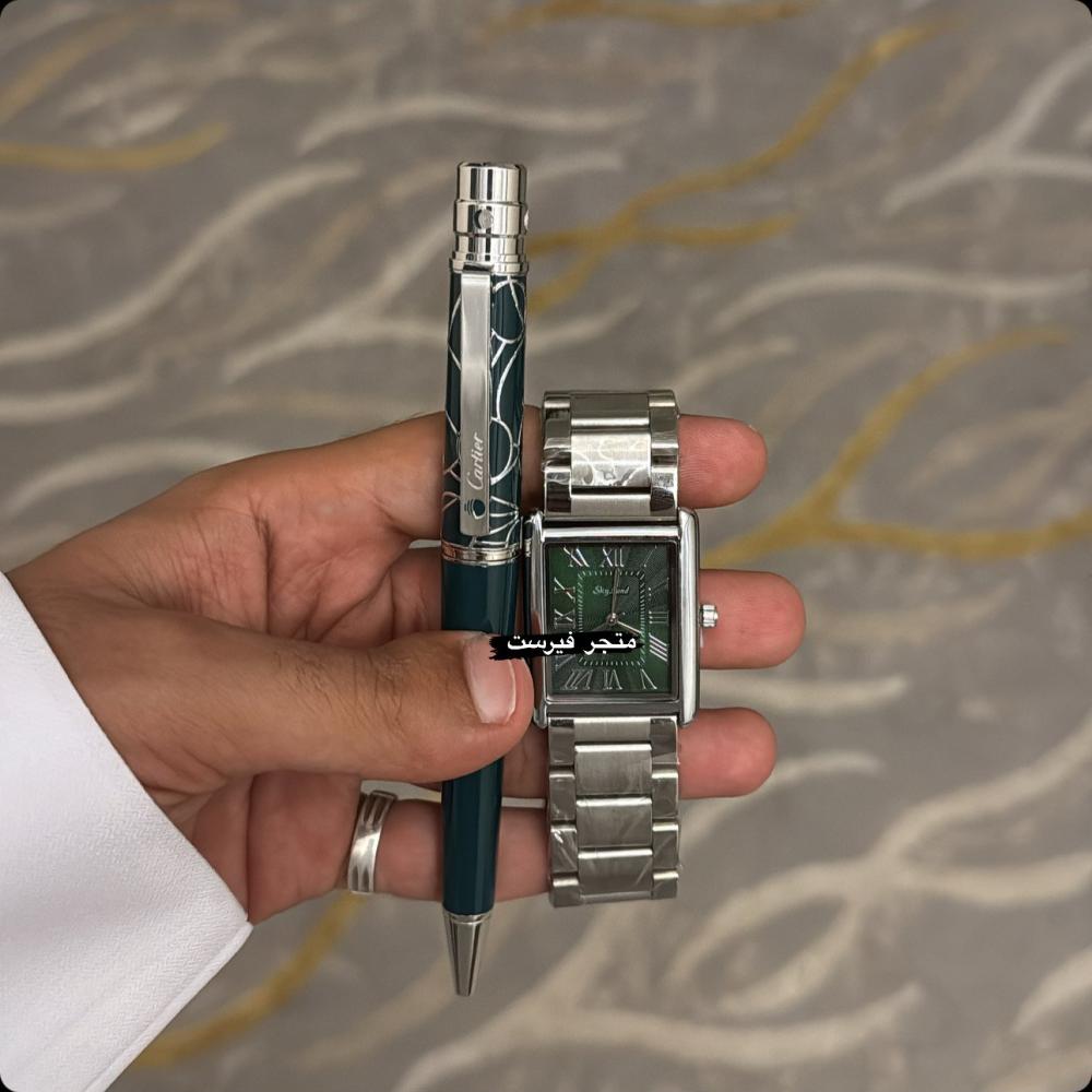 طقم ساعه وقلم كارتير يليق بك ✨ياتيك بتغليف جميل مجاناً و مناسب للاهداء ❤️الرجاء ابعاد الساعه والقلم عن العطور للحفاظ على لمعان المنتج الرجاء عدم تاخر الساعه لفترة طويله في الماء