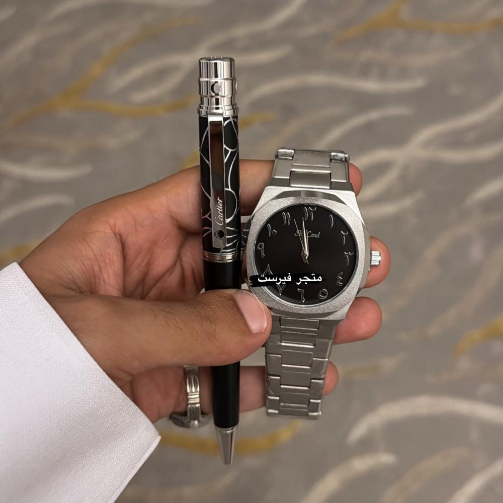 طقم ساعه وقلم كارتير يليق بك ✨ياتيك بتغليف جميل مجاناً و مناسب للاهداء ❤️الرجاء ابعاد الساعه والقلم عن العطور للحفاظ على لمعان المنتج الرجاء عدم تاخر الساعه لفترة طويله في الماء